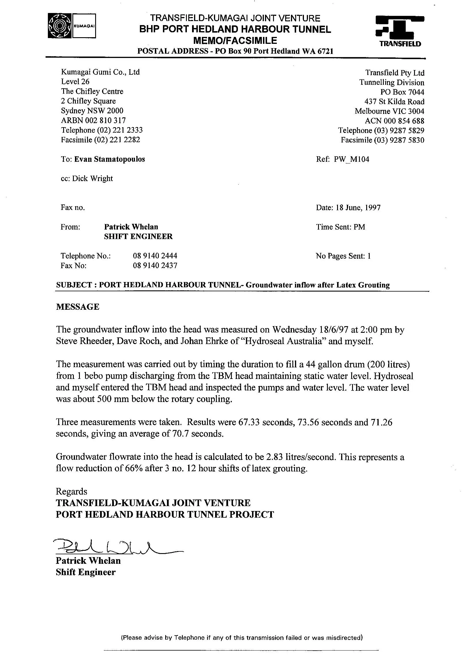 Transfield-Kumagai Joint Venture BHP Port Hedland Harbour Tunnel (1997)